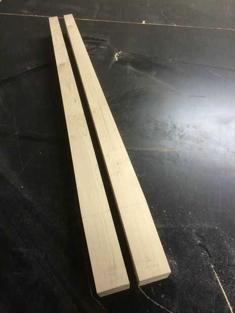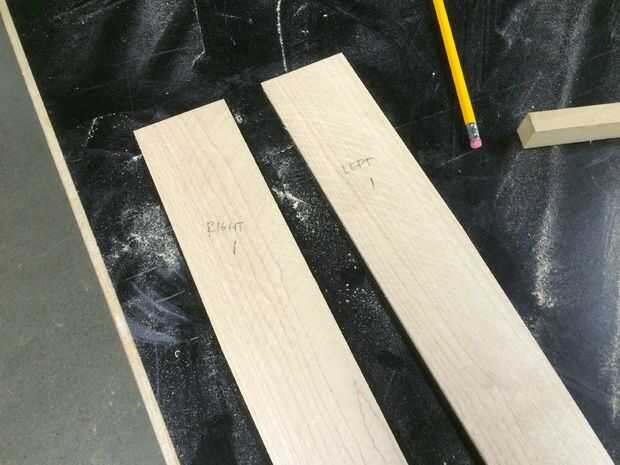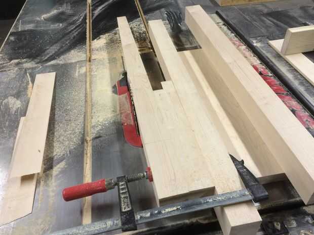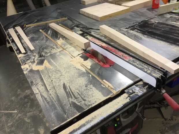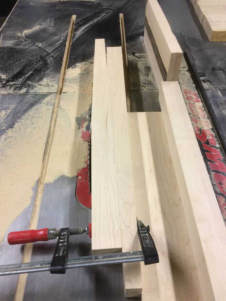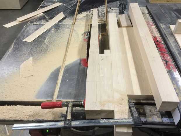 Con el corte de formas cónicas, arrancó lentamente 1/8" listones de uno en uno. Yo debo han cambiado a una hoja de ripeo para dejar un corte más fino y minimizar el material de desecho... La próxima vez. Por el último corte, fue seriamente peludo había tan poco material común izquierda.