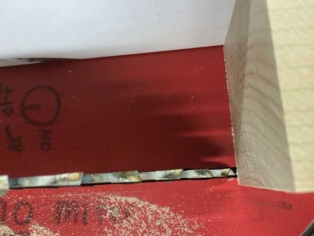 Después de moler el perfil de las dimensiones exteriores como las otras tarjetas, tuve que añadir una conicidad a la parte exterior de cada eje de balancín. Quería esta forma cónica para dar al Presidente una sensación tridimensional y dinámico tres más. Marcado y corte áspero de la sierra un grado dos forma cónica y luego use la lijadora de disco para obtener casi perfecta. En ese momento, ideado un esquema de sujeción loco que me ha permitido utilizar la cuña corta dos grados para cortar el cono en el primer eje de balancín. Sujeta el cono a otra tabla canteada-escuadrada y sujeta a la mecedora. Usando una tabla de perfil bajo pudo evitar la abrazadera con la valla y todavía tienen un borde de referencia sólida para guiar el corte. Yo trabajó lentamente hasta mi línea.