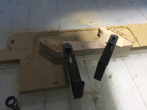La idea era la misma en cada uno. Taladro y molino de bolsillos y agujeros en el interior cara de cada parte y cortan medio una espiga, luego flip y molino de la forma. La forma podría ser difícil debido a rasgaduras, así que terminé haciendo una pared de cuchillo pequeño con luz pasa un par antes de realmente intentar nada de cerdo. Mi carpintería enseñar estaría orgulloso.