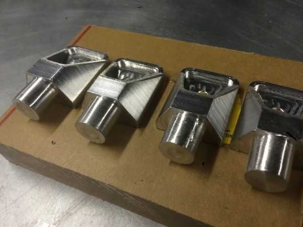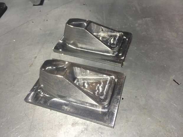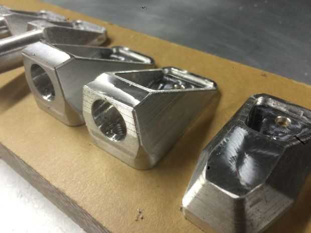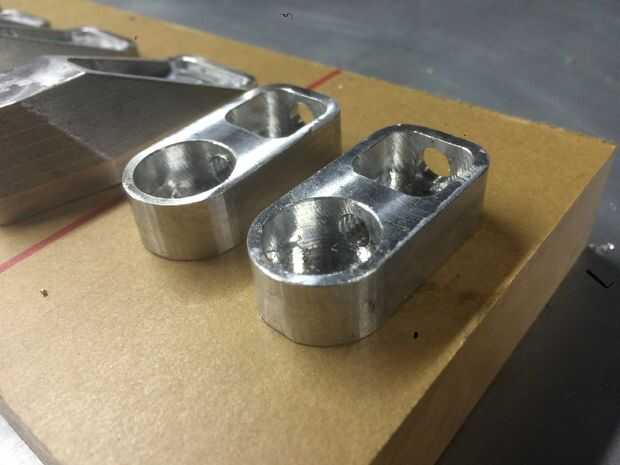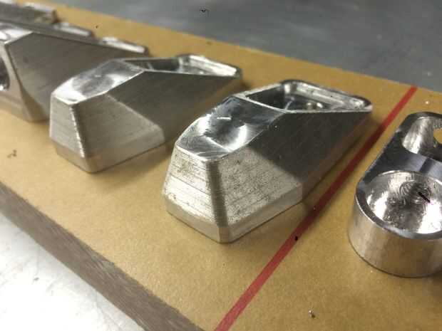 En general, solía un ancho de paso de 0.005" con una fresa plana cualquier superficie angular de la máquina muy rápido. Una fresa esférica funciona siempre en cuestiones de altura con tangencia poniendo la parte inferior de la herramienta por debajo de una superficie dada, no tengo sitio para los chanchullos. Haciendo todo con un ancho de paso de muy pequeña, chorreo de arena hicieron las marcas casi invisible. Pero para un ojo entrenado, hay todavía allí, y entonces sólo pone de relieve una característica genial de la silla - custom CNC fresado hardware!