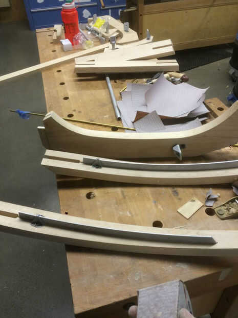 Con todo para el encolado y montaje, lijado todas las piezas con grano 220 o superior (hasta 400 puntos de contacto). Era mucho más fácil mantener los bordes crujientes y conseguir un acabado de superficie uniforme a la arena antes de pegar, incluso sabiendo muy bien que más acabado sería requiere después de la cola.