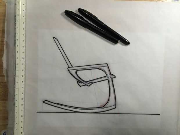 Al final de este proceso, me quedé con una imagen sólida que solía crear vectores para empezar a hacer piezas. Yo utilice este dibujo todas las partes de los lados (brazos, piernas, rockeros) de mi silla y sólo se cortan las articulaciones mismo en el bosquejo para definir