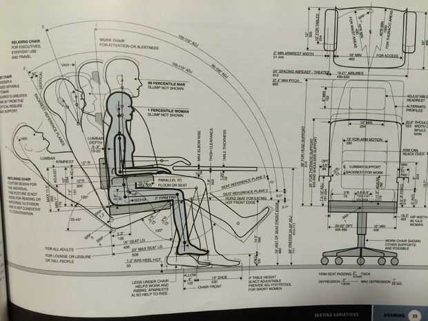 Antes de realizar cualquiera de las líneas, medí algunos de mis sillas favoritas para conseguir un buen punto de partida para altura del asiento, ancho y ángulo del respaldo del asiento. El libro la medida del hombre y la mujer es también una referencia favorito mío, que he utilizado para asegurarse de que mis números fueron en el estadio de béisbol adecuado.