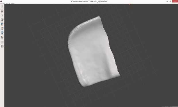 Este paso muestra algunas imágenes de cómo he trabajado con los datos de captura de bruto (que incluyen incluso las alfombrillas de goma! ¡ Agradable!). Divide la malla por la mitad alrededor los mejores datos de calidad, suavizan los contornos y reduce la cuenta de la faceta. Luego exportado, interferido en otros programas, escala hasta el tamaño completoy traído en Autodesk Inventor HSM.