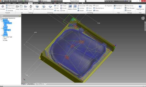 Allí, pude crear un centro de referencia realmente limpio y añadir referencias, fichas y material común para elaborar trayectorias de herramienta CNC. Con este modelo de tamaño completo, yo estaba dispuesto a cortar el asiento y el nuevo tamaño. Prototipos de tamaño completo me permiten esculpir más los detalles de las formas y perfeccionar las formas alrededor de ergonomía que pude probar en tiempo real.