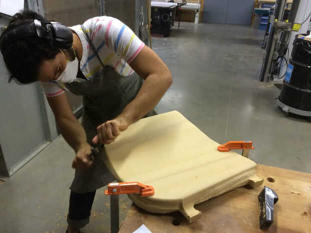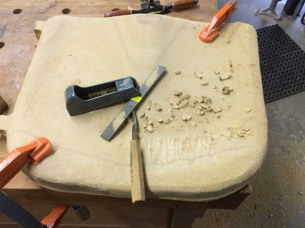 Como un aparte, me encantan los detalles en la cuarta foto. Lo que se ve en muy primer plano no es realmente frenética cincelado - es la herramienta CNC intentando coincidir con los datos de malla que ve en el modelo que está cortando. Qué es tan notable es cómo similar parece primitiva talla humana, a pesar de ser lo más absoluto de él. Deseo podría haber conseguido resultados consistentes con este proceso y habría dejado que la entera superficie de la silla.