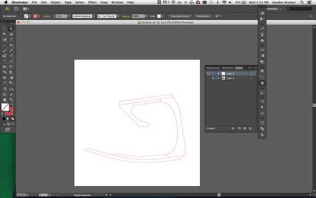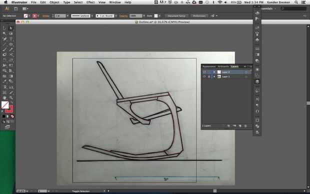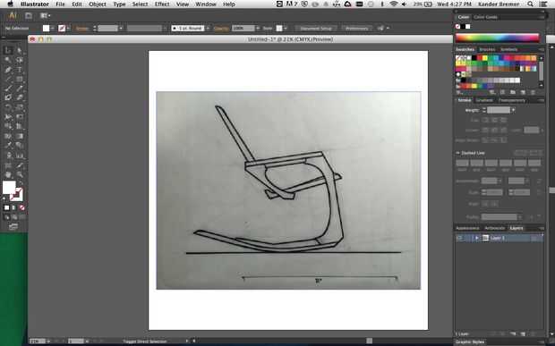 En este paso, tomé mi borrador imagen del perfil de la mecedora y utiliza Illustrator para vectores en ese dibujo del recubrimiento. Esta manera, se podían transferir mis propias líneas en el mundo digital.
