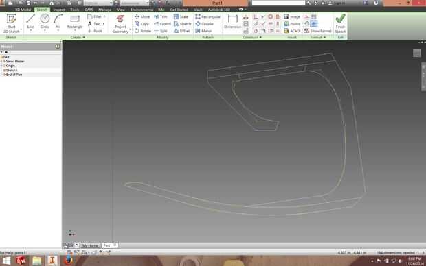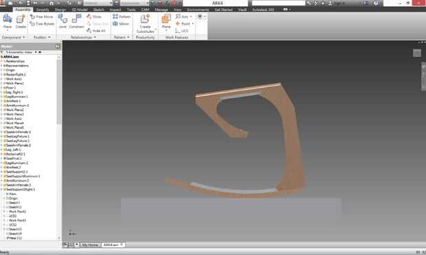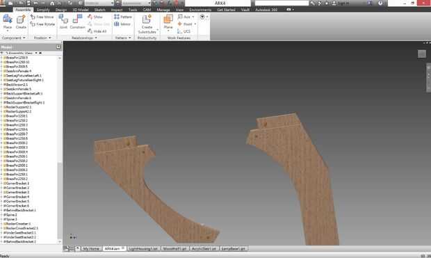 Una vez que estas líneas fueron en Inventor, usé el mismo bosquejo principal para crear cada una de mis partes. Simplemente hacer todas las líneas en líneas de construcción y creó la geometría necesaria para las uniones de estos bocetos del maestro. Este proceso fue bastante sencillo, ya que para fines de fabricación, el perfil es esencialmente 2D, así que todas estas piezas eran simplemente rectas extrusiones en el bosquejo principal, con sólo algunos detalles de carpintería.