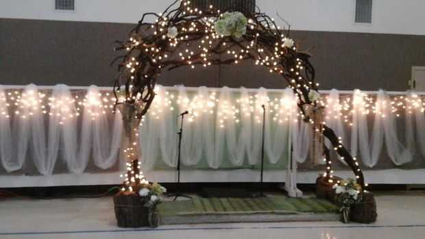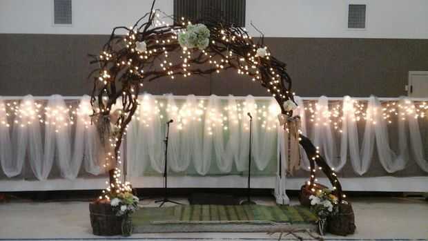 este cenador de jardín de madera es portable por lo que se puede tomar cualquier lugar que desee.El diseño de ventilador simple da la boda DIYer un sueño-esquema de posibilidades ilimitadas, imaginativos.Como en la imagen, el eje es drapeado y tejido