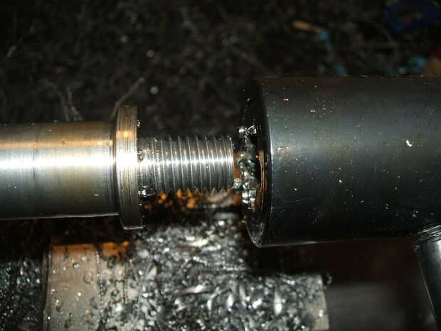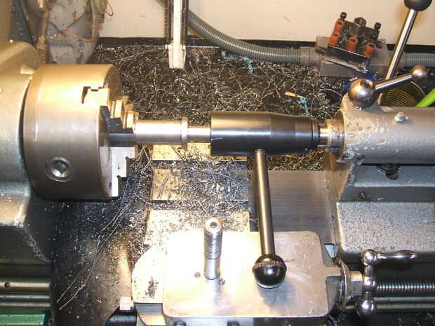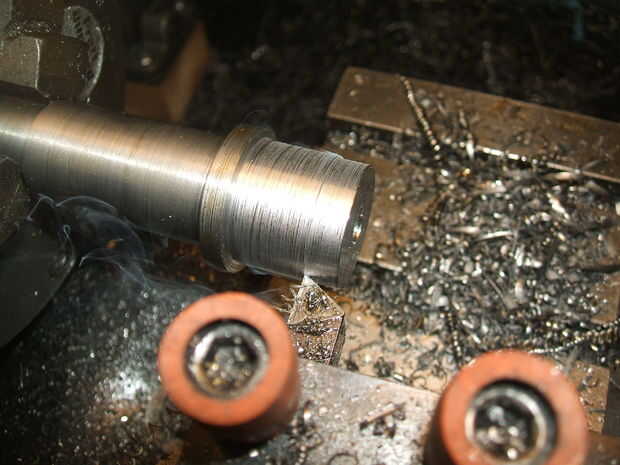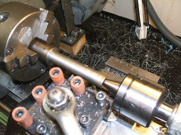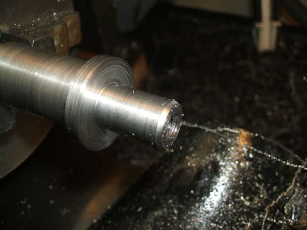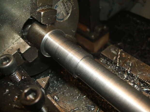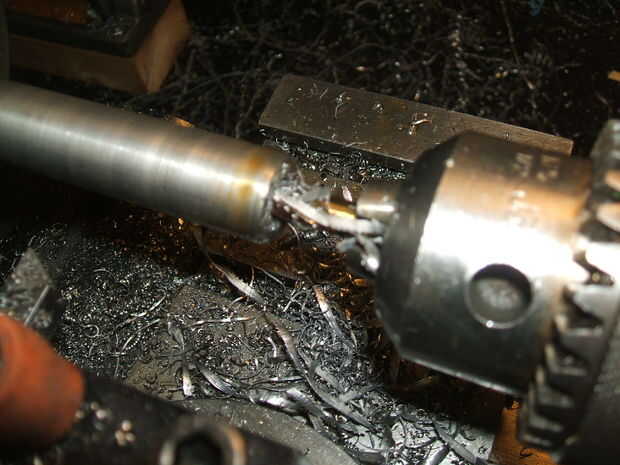 - Forma un hombro en el extremo en bruto de la barra (este hombro debe caber a través del agujero en el protector de changewheel).