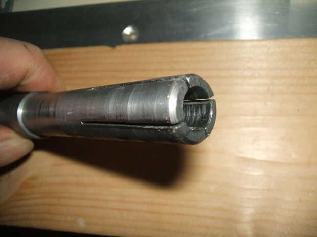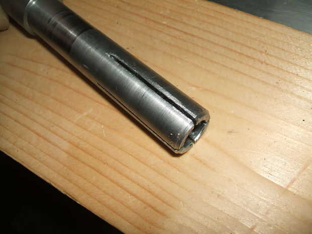 - Cortar cuatro ranuras para permitir el mandril para ampliar (simplemente utilicé una sierra de arco, no que ningún otro método).