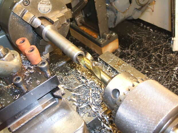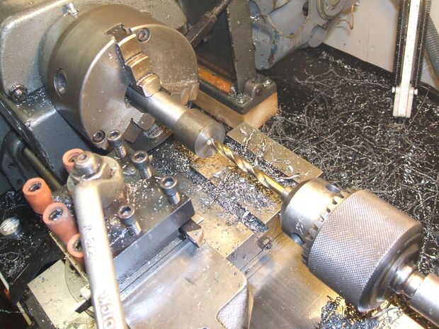 - La barra del tirón en el mandril y perfore un agujero de 6mm para reunirse con uno desde el otro extremo (con suerte).