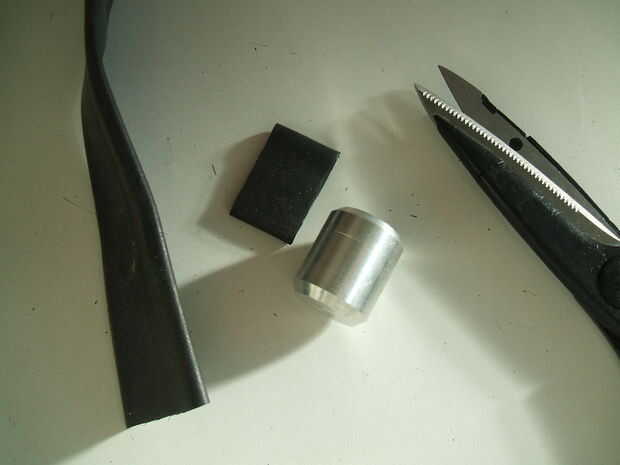 Quería lo conmutador, pero yo todavía no tengo un knurler así que corte un tramo corto de tubo interno bicicletas totalmente equipadas muy bien alrededor de la circunferencia. Esto hace más fácil agarre, sobre todo con los dedos aceitosos.