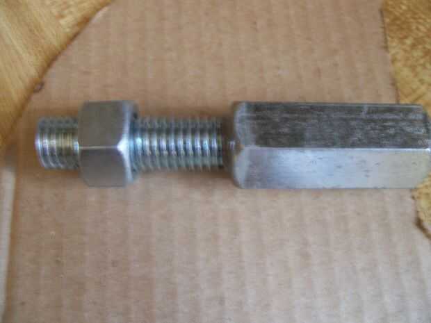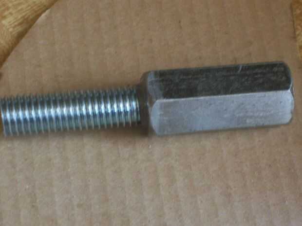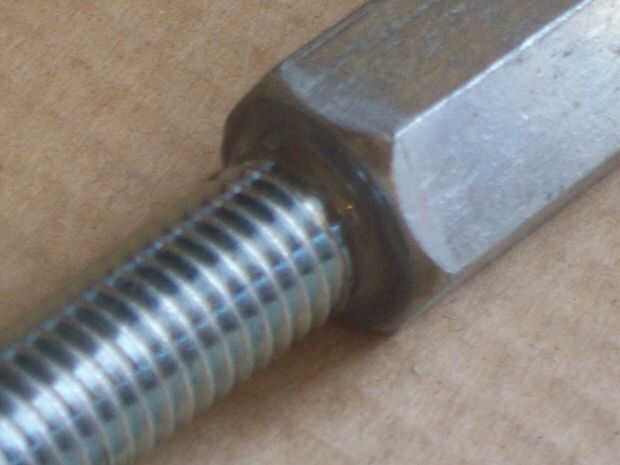 También presiona una pequeña cantidad en los primeros hilos de la tuerca de acoplamiento en solamente un lado y luego la varilla roscada en la tuerca que permite el exceso JB Weld recoger en la cabeza de la tuerca hasta que este se introduzca aproximadamente 1 pulgada en la tuerca.