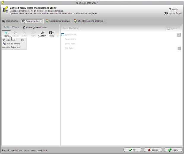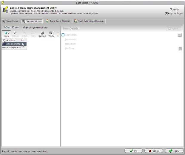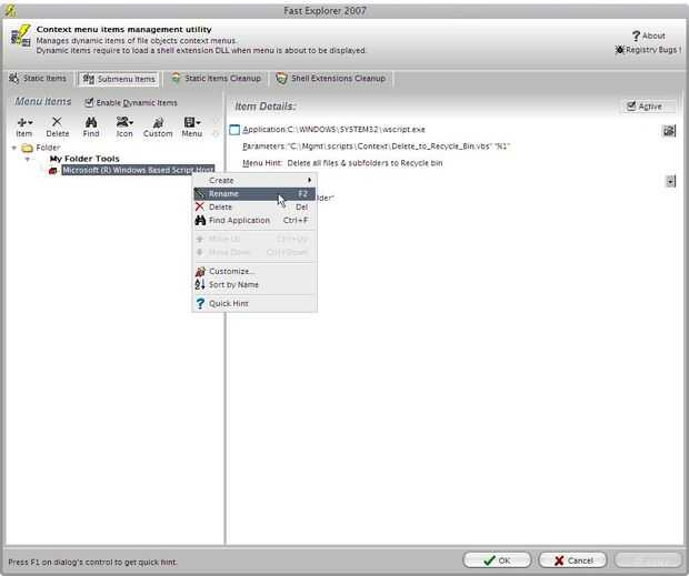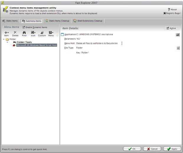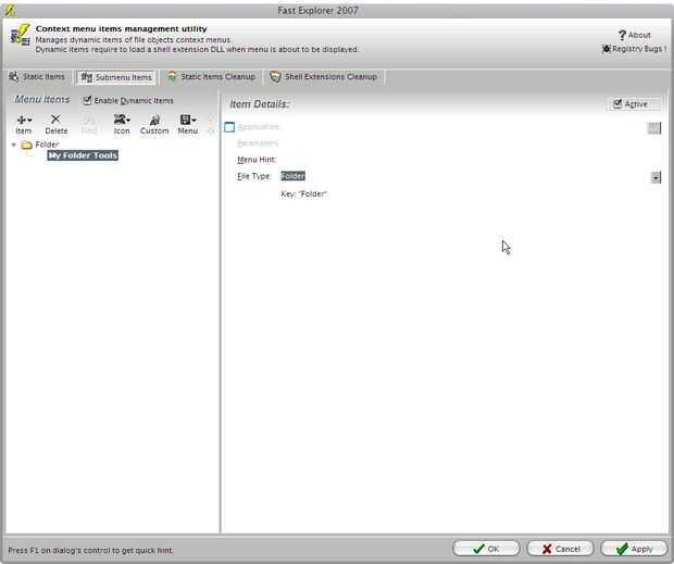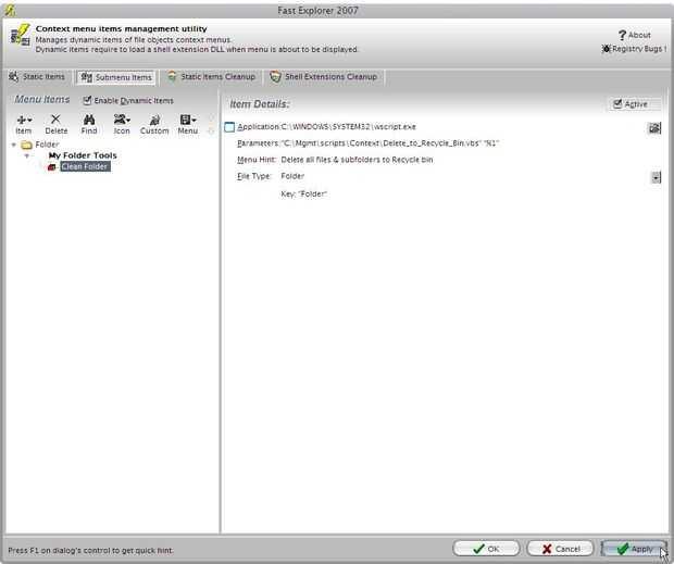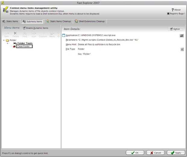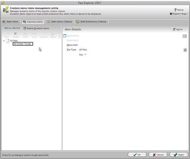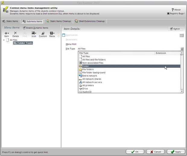 (esto hará que la muestra del elemento en la carpeta click derecho sólo en el menú)