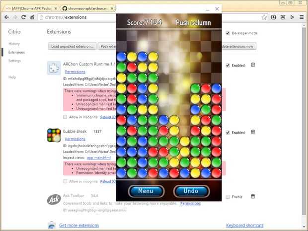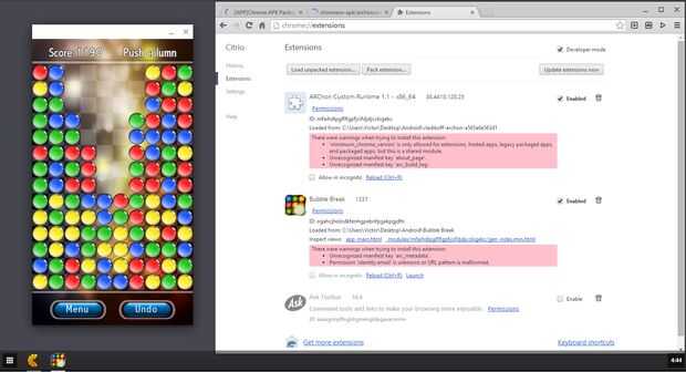 Nota: en caso de no inicia la aplicación, probar con otra versión de ARChon. (x32/x64)