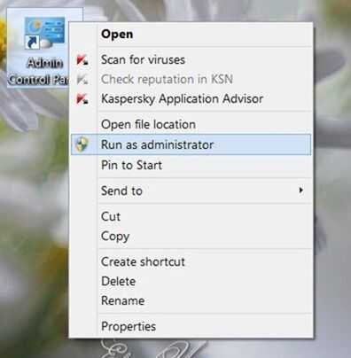 Ejecutar el panel de control como admin
