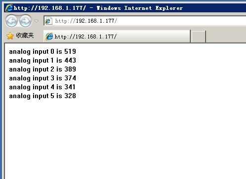 Entrada http://192.168.1.117/ en la dirección del navegador y se puede ver el valor de salida analógico A0-A5