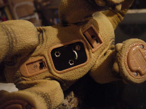 Dinosaurio robot Pleo lleva increíblemente costosas baterías $49, que también funcionaba bien para nosotros (o el cargador no funcionaba bien). Pero es bastante fácil de convertirlo en seis baterías AA de NiMH ordinario. El proyecto está inspirado en éste, pero toma una ruta diferente.