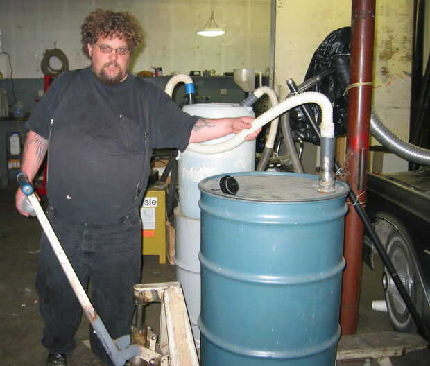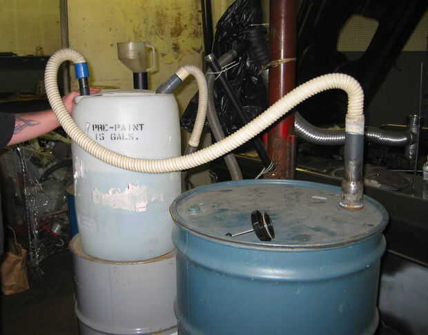 Su mano izquierda está en la manguera de ventilación de hidrógeno. El gas que las burbujas fuera de ella es caliente y húmedo y tiene una gran cantidad de polvo de óxido de aluminio blanco. Así que la próxima va en un tubo en la parte inferior del burbujeador blanco del tanque, donde burbujea a través del agua. Lo hace fresco y limpio.
