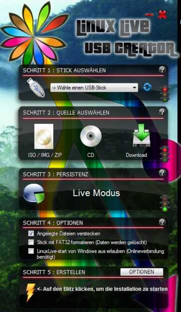 Paso 5: Haga clic en el icono de rayo para iniciar la instalación. Después de hacerlo te puede simplemente arrancar desde su dispositivo USB y seleccione "Probar Ubuntu sin instalar". Todo lo que haga se guardarán, por lo que no te preocupes. Gracias a la persistencia de la memoria se establece antes de los archivos y ajustes se guardarán.
