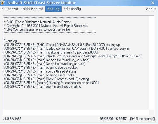 contraseña (esta es la contraseña que debe introducirse al configurar cosas de winamp, no se conecte al servidor) cambia a lo que sea.