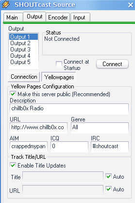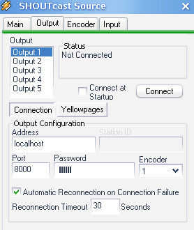 Ahora haga clic en la ficha de salida Seleccione la salida 1. Lo único que tienes que cambiar es la contraseña (debe ser especificado en la configuración del servidor en el último paso) dejar todo lo demás.