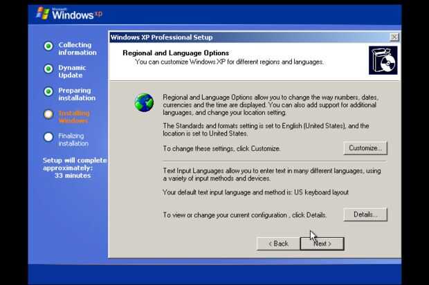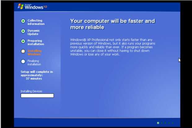 Siga las instrucciones para instalar Windows XP. Tardará unos 5 minutos para cargar controladores y entonces comenzará la instalación principal. Esto va a ser divertido instalar y probar aplicaciones antiguas.