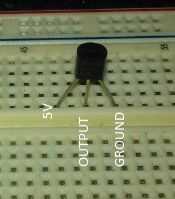 Así que con eso fuera del camino, conectaremos el LM35 a su poder, tierra y se enganchará la salida analógica Pin 5 de Arduino.