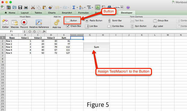 - Haga clic en el icono del botón en la ficha de desarrollador como se muestra en la figura 5