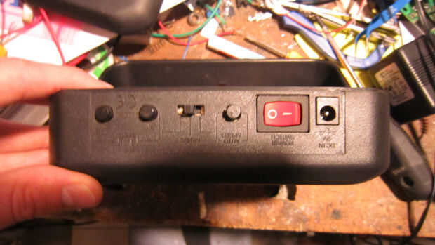 Primero queria conectar el nuevo láser al conector del láser original, pero hubo una resistencia antes de él que fue limitando la corriente bajo como 30 mA para que había soldado directamente a 7806. Pero puesto que el láser dibuja 350mA, el 7806 comenzó a calentarse mucho por lo que colocar un pequeño disipador de calor en ella y había instalado ventilador de pc pequeña dentro de la caja.