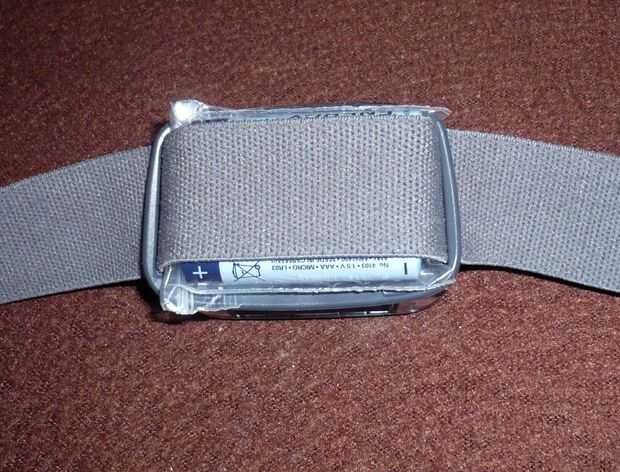 Puede ahora fácilmente conectar la batería a la parte posterior de la linterna, asegurándola con la cinta.
