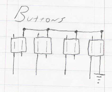 Los interruptores que vienen con el juego pong tienen 4 pines, si coloca el interruptor donde los conductores están apuntando hacia arriba y hacia abajo están conectados 2 a la izquierda, la 2 a la derecha estén conectadas, y sólo cuando se pulsa el botón los cuatro conectados, tan sólo un simple interruptor momentáneo de SPST, igual es verdad de Interruptores táctiles más como este.