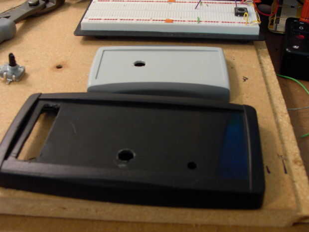 Al perforar la cara salí del recinto atornillado, personalmente si el taladro perfora a través (y lo hará mi granito de arena es embotado) Id dejar algo un poco chuleta en el interior de una caja de plástico mal probablemente nunca abra otra vez sobre mi superficie de trabajo