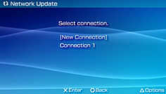 Si no han creado y guardado una conexión, no se mostrará conexiones. En este caso, seleccione "Nueva conexión" y entrar en la configuración de red necesaria. Para obtener más información, consulte las instrucciones que vienen con el sistema PSP.