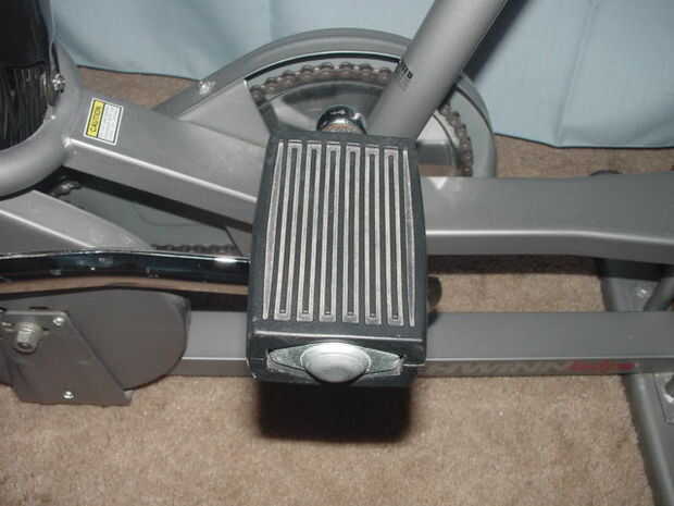 El tipo de pedales en una bicicleta estática depende de cómo desea montar. Sin zapatos, necesita pedales con una superficie plana. He dejado la goma stock pedales de "ladrillo" sobre el Airdyne. El Panasonic EX-1000 (100 mejor que un DX900?) consiguió un par de pedales de paseo amplia Schwinn. La Panasonic tenía pedales de marco de acero que estaban en motos de calle en los años 50 y años 60. Hay todo tipo de pedales, clips, jaulas y los zapatos