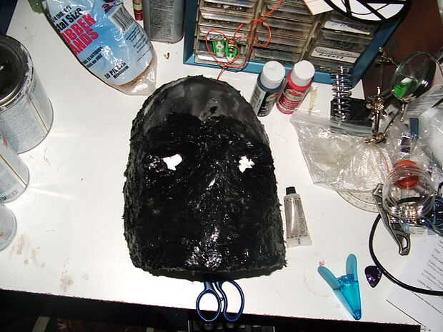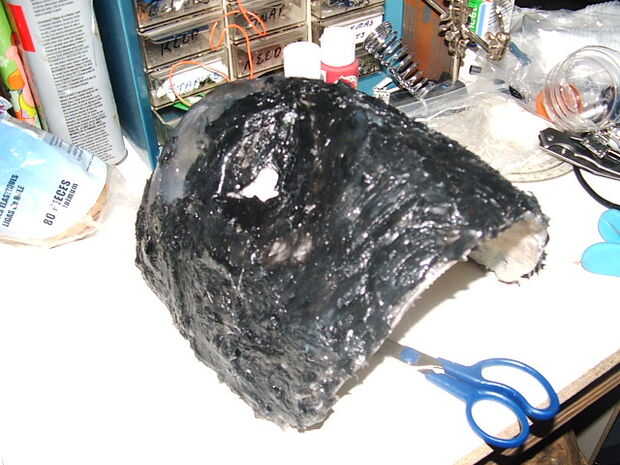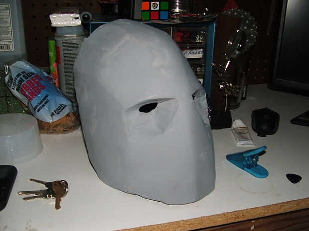 Después de que había marcado algunas asperezas siguió adelante y poner una capa de imprimación para ver todos los anuncios de ruff y enarenó abajo suave como mantequilla. Yo quería hacer un molde de él así que pude hacer varias máscaras rápidas. así que empecé a construir la silicona en la máscara. ahora nunca he hecho un molde de algo por lo que se trata fue una experiencia de aprendizaje.