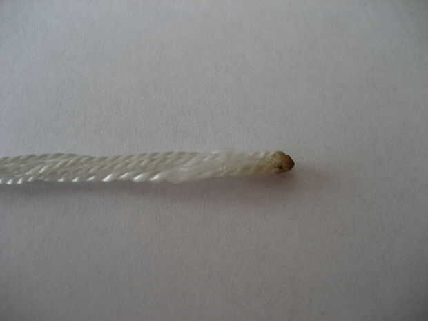Plegar el paracaídas para que todas las líneas confluyen. Cortar las líneas por lo que son la misma longitud que el más corto. Use el encendedor para derretir y fundir las líneas para hacerlas más fáciles de atar. Si eres exigente, poner las líneas en orden así que no cruzaron antes que fusionarlos.