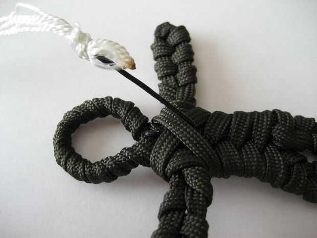 Sujetar el gancho a la Cruz en la parte posterior del uniforme de hombre de ejército.  Amontonan el paracaídas y luego doblar por la mitad.  Enrolle el cable alrededor del paracaídas y mezcle en el cielo.  Sobre mano o mano bajo funciona bien para lanzar.  El paracaídas despliega muy rápidamente, así que experimento con tirantez del paracaídas y se ajusta de altura máxima.