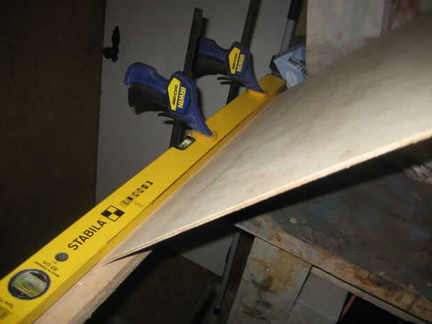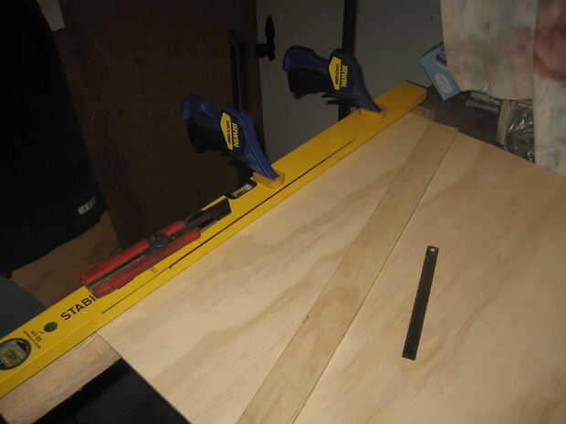 Corte una pieza de contrachapado por la parte superior, trate de escoger un poco con algún grano agradable y cortar aproximadamente 1/2" ancho de la línea.