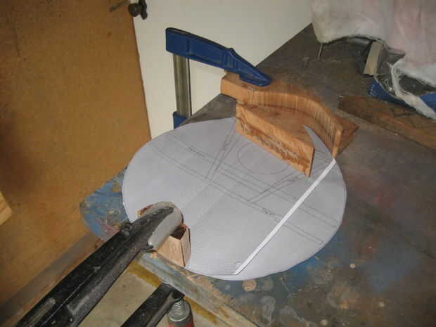Mientras está secando, imprimir otra copia de los planos y pegar a algún cartón pesado, doble grosor si lo puedes encontrar. Corte con la navaja del cuchillo en el interior borde de línea, también cortar la cabeza y cola de bloques. Una vez que el pegamento esté seco y el cuerpo de las pinzas, brocal el cartón en su interior para mantenerse en forma, debe ser un ajuste muy ceñido.