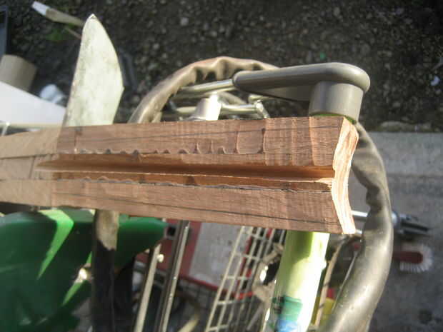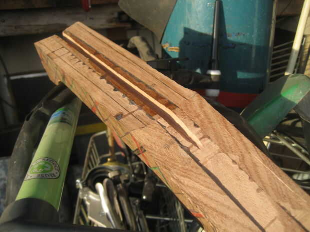 Antes de formar hacia fuera del cuello, corte una ranura para la barra del braguero de 3/8" profundidad en la Sierra de mesa o router o lo que tengas.
