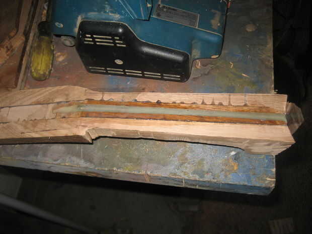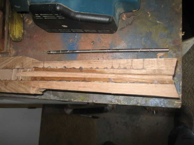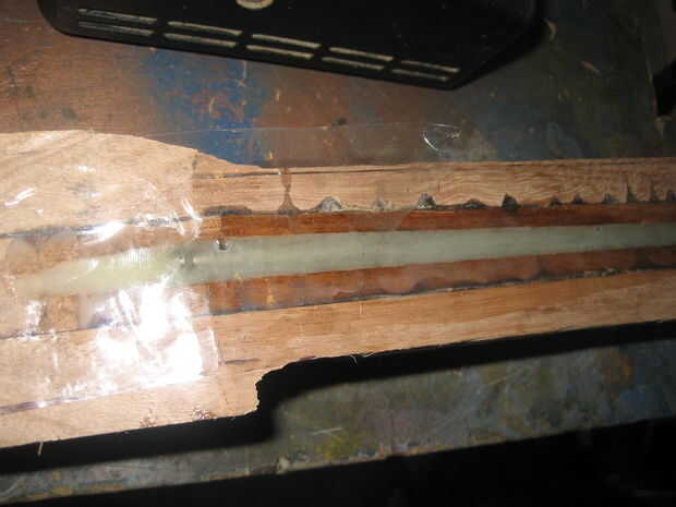Procede el alma. Cortar la varilla para exacta longitud y áspero para arriba un poco con una lima o amoladora para dar el pegamento más compra. Debe quedar completamente por debajo de la madera, cuando, mezclar algunos epoxy y rellene. Pongo algunos cinta adhesiva en los extremos para evitar que el pegamento salga.