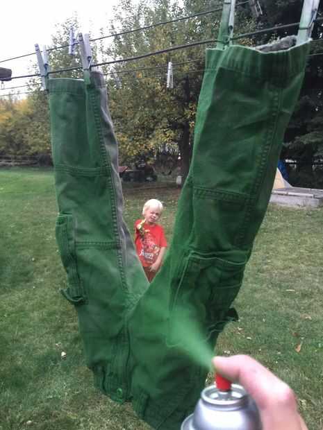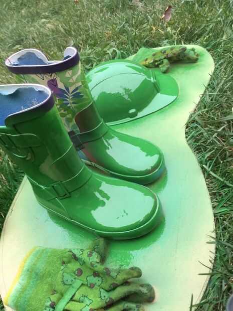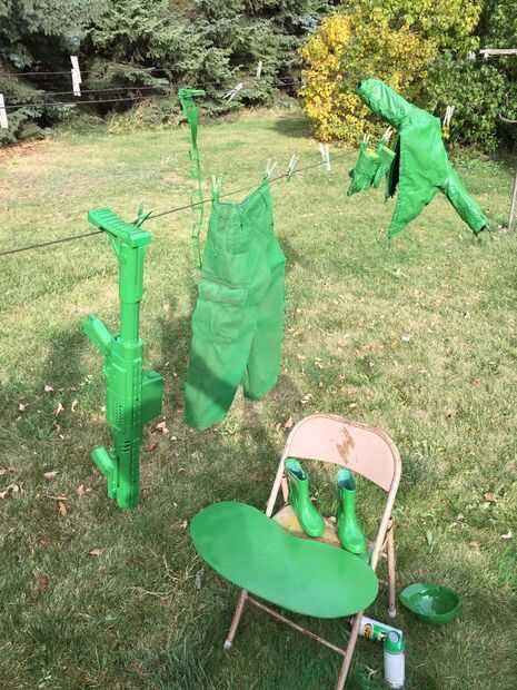 En retrospectiva, yo habría utilizado guantes de cuero que no requieren tantas capas de pintura. Usé pintura en aerosol verde de John Deere de Lowes.