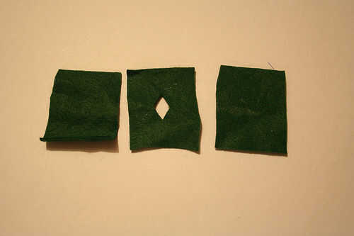 • Coloque el fieltro con el corte de diamante en cada uno de las otras piezas y hacer una marca de lápiz fueron el corte de diamante.
