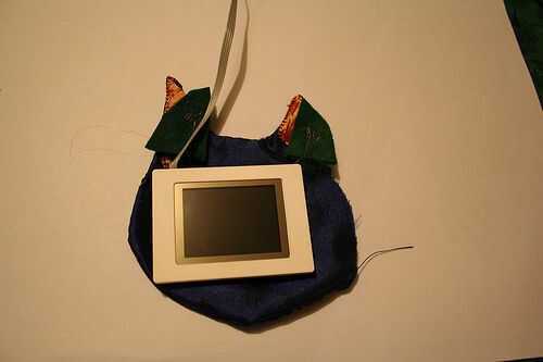 • Soldadura el cable desde el marco de fotos LCD sobre la mosca lleva en cada lado del tejido.