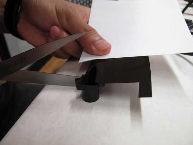 • Mida la abertura cuadrada de la nueva montura. Cortar un cuadrado de la hoja de filtro minuciosamente más pequeño y lo coloca en la montura de apertura.