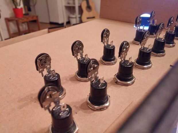 La soldadura de una de las patas exteriores de todos los potenciómetros de ajuste a una de las patas de todos los pulsadores momentáneos. Los potenciómetros se utilizan como simples resistencias variables.