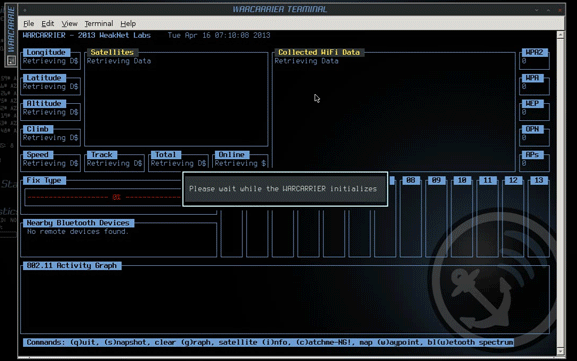 Puede descargarse el software WARCARRIER que escribí en la página de Google Code aquí. Es una herramienta de reconocimiento que recoge el GPS, WiFi, Bluetooth espectro, dispositivos Bluetooth y mucho más. Puede crear mapas de Google, parcela camino-puntos y mucho más. Se requiere de algunas dependencias, de Perl que puede ser instalado utilizando los comandos siguientes,