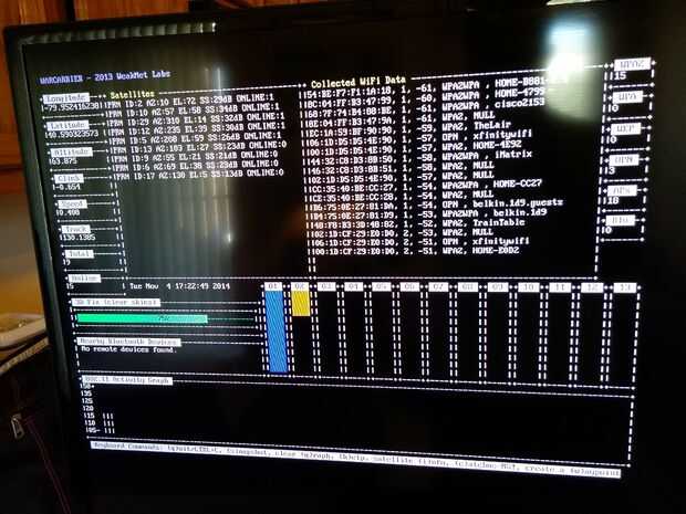 WARCARRIER puede explorar utilizando una sonda de null para los dispositivos circundantes si un dongle USB Bluetooth está conectado a la Pi. Se trata de una exploración ruidosa que podría inducir algunos WIDS banderas. WARCARRIER explorará también el espectro de Bluetooth para cualquier ruido utilizando la Ubertooth una como se indica en los requisitos de Hardware en la introducción. Esto requiere Spectools de Dragorn leer los datos de como se menciona en la página de WARCARRIER Bluetooth Wiki que creé aquí. Si no han leído cualquiera de trabajo de Dragorn, sugeriría que si usted está en pruebas de penetración 802.11 es brillante. Esto permite que las instantáneas de WARCARRIER para contener dispositivos Bluetooth locales, el espectro, APs Wi-Fi y la localización GPS de todos en una sola instantánea.
